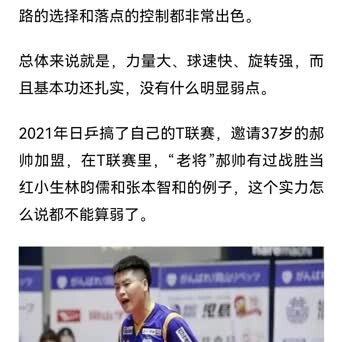 总体来说就是,力量大、球速快、旋转强,而且基本功还扎实,没有什么明显弱点。